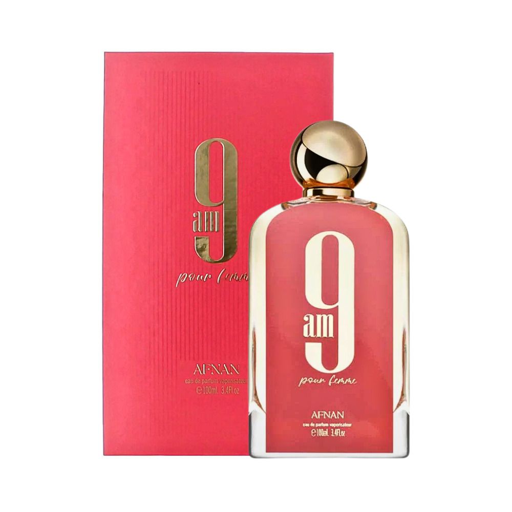 9am de Afnan es una fragancia de la familia olfativa para Mujeres. Las Notas de Salida son limón (lima ácida), mandarina, cardamomo y pimienta rosa; las Notas de Corazón son lavanda, manzana verde, flor de azahar del naranjo y rosa; las Notas de Fondo son almizcle, musgo, cedro y pachulí.
