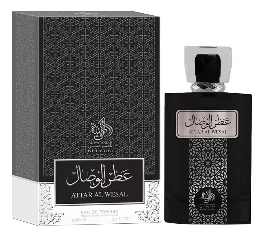 Attar Al Wesal de Al Wataniah es una fragancia de la familia olfativa Ámbar Especiada para Hombres y Mujeres. Attar Al Wesal se lanzó en 2020. Las Notas de Salida son pera, lavanda, menta, bergamota y limón (lima ácida); las Notas de Corazón son canela, comino y esclarea; las Notas de Fondo son vaina de vainilla negra, ámbar, pachulí y cedro.