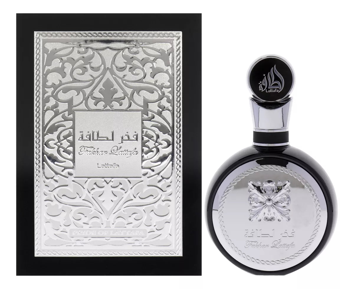 Fakhar Black de Lattafa Perfumes es una fragancia de la familia olfativa Oriental para Hombres. Esta fragrancia es nueva. Fakhar Black se lanzó en 2022. Las Notas de Salida son manzana, bergamota y jengibre; las Notas de Corazón son lavanda, salvia, bayas de enebro y geranio; las Notas de Fondo son haba tonka, cedro, Amberwood y vetiver.